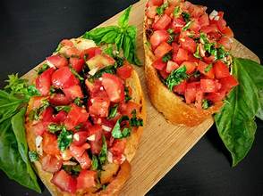 Toasted bread topped with tomatoes, garlic and basil. $6.99 Order Now |